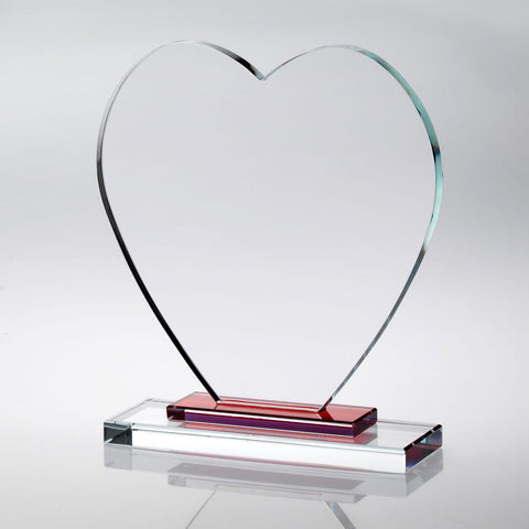 CLEAR GLASS HEART WITH RED STEPPED BASE - JB1200